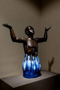 Due prospettive intimamente legate e in dialogo continuo che percorreranno con l’artista un itinerario estetico, materico e di ricerca che desidera porre il visitatore di fronte ad una importante riflessione, subito dopo lo stupore, lo spirito di scoperta o di appartenenza di identità. Al centro di questi due poli un incontro con l’antropologo Stefano De Matteis, conversazione che pone Scuotto nei panni di un artista in grado, attraverso il suo Dna marcatamente napoletano, di addentrarsi nelle profondità dell’esistenza umana, raccontarsi e raccontare di luce e ombra, di inquietudine e bellezza, di dolore e rinascita: tutto ciò che potrebbe scomparire nella fretta del quotidiano rimane impresso nella materia, lavorata ad arte, e si trasforma in tasselli di memoria. Scuotto osserva e rielabora, interiorizza e trasforma, alla continua ricerca di una dimensione altra da raggiungere attraverso il suo linguaggio, la sua intima urgenza, il suo pane quotidiano: la scultura.“Con il suo sguardo profondo, quello di chi sa osservare l’orizzonte indefinito e lontano del mare o sa scrutare gli abissi delle viscere napoletane da cui il cielo mostra oniriche sfumature, ricorda Vulcano – o Efesto per la mitologia greca – creatore di materia dal profondo della terra.” – A.Immediato– e PURGATORIO diviene per ognuno di noi un personale viaggio nelle profondità inscrutabili e finalmente affiorate.