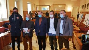 “Il calcio finisce , la vita resta e voglio sempre dare come uomo un ricordo importante”.L’essenza di questa frase di Carmelo Imbriani è andata oltre il virgolettato e ha viaggiato sulle spalle e negli occhi di Gianpaolo, suo fratello che ha mantenuto fede ad una promessa, quella affidata alle parole da un letto d’ospedale prima che Carmelo morisse. Carmelo Imbriani, il calciatore gentile, l’uomo esemplare, ha combattuto duramente la sua battaglia contro un Linfoma, ma la sua vita si è fermata solo a 37 anni ,quando Carmelo di cose da fare e raccontare, ne aveva ancora tra la gente e sul campo da calcio. Nasce da qui il progetto di portare il suo nome ovunque nel mondo, così Gianpaolo inizia l’impresa che prova a dare un senso a quella scomparsa. Gianpaolo gira mezzo mondo , lo fa a piedi in autostop con ogni mezzo, l’importante è far conoscere Carmelo e il suo meraviglioso messaggio di forza. Gli occhi di Gianpaolo ancorati al cuore di Carmelo vedono cose straordinarie durante un viaggio lungo 374 mila 970 km, attraversando 107 paesi. Questo viaggio che idealmente Gianpaolo e Carmelo fanno insieme, è raccontato in un libro: “La storia di una promessa” presentato a Benevento a Palazzo Mosti. Trecento pagine appassionanti e intense che raccontano anche della sfida di costruire campi da calcio intitolati al calciatore scomparso, nei luoghi più poveri della terra, dove il riscatto sociale per tanti ragazzi e bambini può arrivare, perché no, anche da un calcio ad un pallone. Ad accogliere Gianpaolo il Sindaco di Benevento Clemente Mastella, il consigliere delegato allo sport, Vincenzo Lauro, gli ex compagni di squadra di Carmelo e il presidente del Benevento Calcio, Oreste Vigorito. Un incontro bello e denso di emozioni, ma di quelle sane e costruttive, proprio come vorrebbe Carmelo.