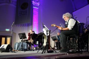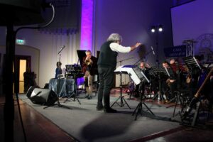 La chiusura è con “Ce La Posso Fare” di Roberto Spadoni, che riprende l’intro della serata e porta a compimento un brano ricco di sfumature e occasioni di grande improvvisazione per tutti i solisti, bravissimi, dell’orchestra. Il Maestro Spadoni, con grande versatilità e sicurezza, alterna, qui come altrove, i sui momenti alla chitarra, straordinariamente distintivi, nitidi e vivi, con quelli da bravo direttore.
