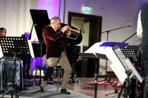 Terminato il workshop, Fresu, nella serata di ieri, questa volta all’Auditorium Sant’Agostino, è stato, poi, protagonista special guest di un grandissimo concerto con l’Orchestra Jazz del Conservatorio Nicola Sala di Benevento, evento incluso nell’eterogeneo cartellone della Stagione Concertistica 2023 organizzata da Accademia di Santa Sofia, in sinergia con Università degli Studi del Sannio e Conservatorio di Benevento. Kermesse che vanta sempre Filippo Zigante e Marcella Parziale alla direzione artistica, e Marcello Rotili, Massimo Squillante e Aglaia McClintock, alla consulenza scientifica.