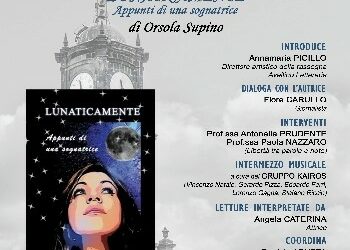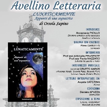 Nuovo appuntamento con “Avellino letteraria” sabato 23 settembre alle 18, per la presentazione del libro “Lunaticamente, Appunti di una sognatrice, edito “Backstage&Set, di Orsola Supino, scrittrice, poetessa, pittrice.