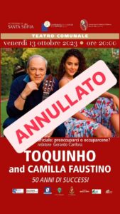 L’agenzia che segue Toquinho ha comunicato con dispiacere che: “a causa di un serio problema di salute dell’artista, il tour italiano del prossimo autunno (ottobre 2023) è rimandato a data da