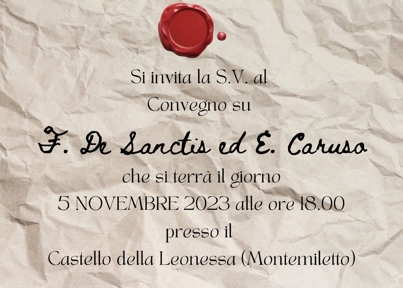 L’Associazione Serenella Night di Montefusco (Av) in collaborazione con l’Associazione Musicale Internazionale “Johannes Brahms” si è fatta promotrice del Ciclo di Convegni Itinerante dal titolo “Francesco De Sanctis & Enrico Caruso: Due Mondi a Confronto”