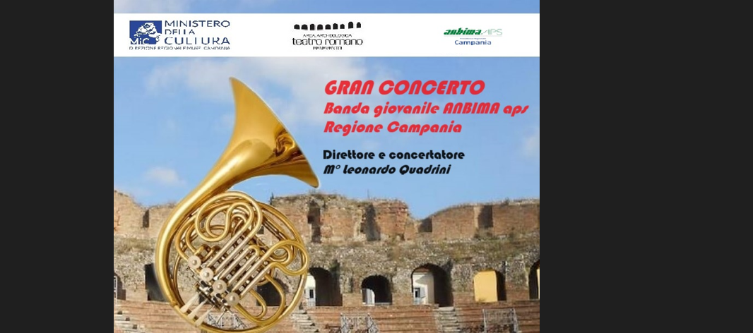 Domenica 12 novembre alle ore 17:00 l’organico dell’orchestra di fiati, formato da giovani talenti musicali del mondo associazionistico ANBIMA CAMPANIA APS provenienti da tutte e cinque le province della regione Campania, si esibirà all’interno della fantastica cornice del Teatro Romano di Benevento.