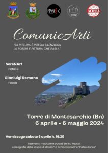 Pittura e poesia si fondono a partire dal 6 aprile alla Torre di Montesarchio (Bn), location suggestiva e prestigiosa del Sannio. Una mostra organizzata dall’artista SereNArt e dal poeta Gianluigi Romano, con il patrocinio del comune di Montesarchio e di Cervinara, in collaborazione con l’associazione “Sentinelle della torre”, il Museo Archeologico Nazionale del Sannio e l’associazione ACIPeA.