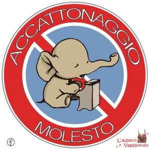 La grafica del logo di #accattonaggiomolesto è di Ira Secondo Tempo alias Mimmo Pastore.  L’idea è de L’Albero Vagabondo. Il collettivo è una forma aperta, fluida e libera di partecipazione