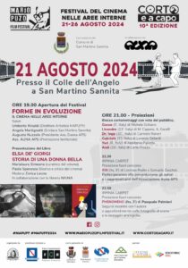 Dal 21 al 26 agosto 2024 ritorna il Festival del cinema delle aree interne: Corto e a Capo – Premio Mario Puzo giunto alla sua X Edizione. Dopo la grande attenzione e affetto nelle edizioni precedenti quest’anno il filo conduttore è Forme in Movimento – Corpi, paesaggi e presenze nel cosmo che ci circonda. “Ogni fotogramma è diverso dall’altro, ogni piccolo cambiamento è un passo verso l’azione, la trasformazione, il movimento ed è il movimento che crea le storie, le piccole storie come quelle che hanno fatto epoca – così il direttore artistico Umberto Rinaldi introduce la nuova edizione.