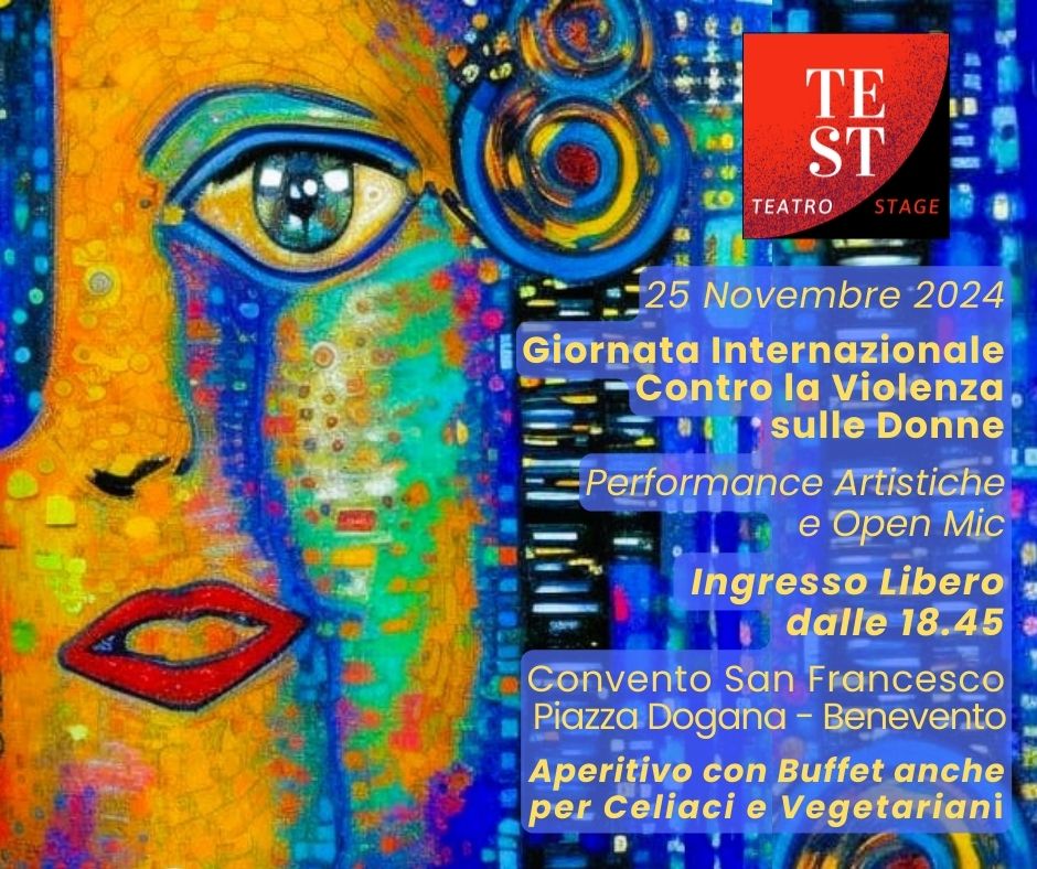 In occasione della Giornata internazionale per l’eliminazione della violenza contro le donne, lunedì 25 novembre dalle ore 18.45, TeSt – Teatro Stage, il Laboratorio di recitazione e sperimentazione scenica curato da Monica Carbini, proporrà una serie di libere performance artistiche con Open Mic, al Convento San Francesco, Piazza Dogana 13, Benevento.