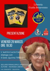 Venerdì 28 marzo, alle 18:30, presso la Libreria Guida di Benevento, Lucia Caruso presenterà i suoi gialli “La nuova Elsa, dopo dieci anni” e “Mond Lader” della collana Policromia. Dialogherà con l’autrice il Dott. Quirino Tirelli, per una serata ricca di emozioni e misteri!