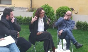 “Donne in poesia” , la poeta sostiene che: “La poesia conserva e lascia andare. Lavoro molto – sottolinea – sul funzionamento e il malfunzionamento della memoria perchè la poesia è sghemba. E’ come se fosse uno sguardo strabico sulle cose. È un produttore di senso, che non viene ingabbiato, ma costituito e al  contempo lasciato all’ indefinibile. Nella mia poesia c’è molta attenzione per lo sguardo e il ricordo. Spesso, dico che sono una poeta nata in superficie, ma nella sostanza, invece, sono nata molto presto. Ho iniziato le mie pubblicazioni a 40 anni, dopo aver studiato tantissimo. Oltre ad essere una poetessa sono anche un’ editrice. Il mio vero seme risale all’infanzia, durante il trasferimento da una città all’altra. Ho vissuto i primi 10 anni della mia vita a Torino per poi trasferirmi a Roma, dove ho iniziato a scrivere le prime poesie, quelle del distacco, ma anche di una liberazione legata alle radici delle mie origini.