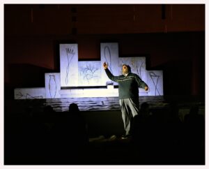 Il luogo si anima attraverso lo spazio disegnato dai danzatori e l’aria diventa satura della voce profonda e sincera di Roberto D’Alessandro.