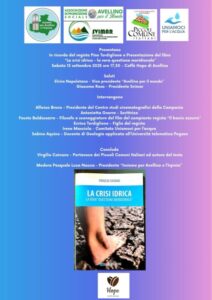 In questa occasione sarà presentato il libro di Virgilio Caivano, “La crisi idrica – la vera questione meridionale”. «È un momento importante – sottolinea Pasquale Luca Nacca, presidente dell’associazione organizzatrice – per ricordare sia chi, come Pino Tordiglione, ha sensibilizzato l’opinione pubblica sul tema dell’acqua con il film Il bacio azzurro, sia l’autore del testo, coordinatore di Piccoli Comuni Italiani, che pone l’accento su una questione che riguarda tutto il Sud Italia».