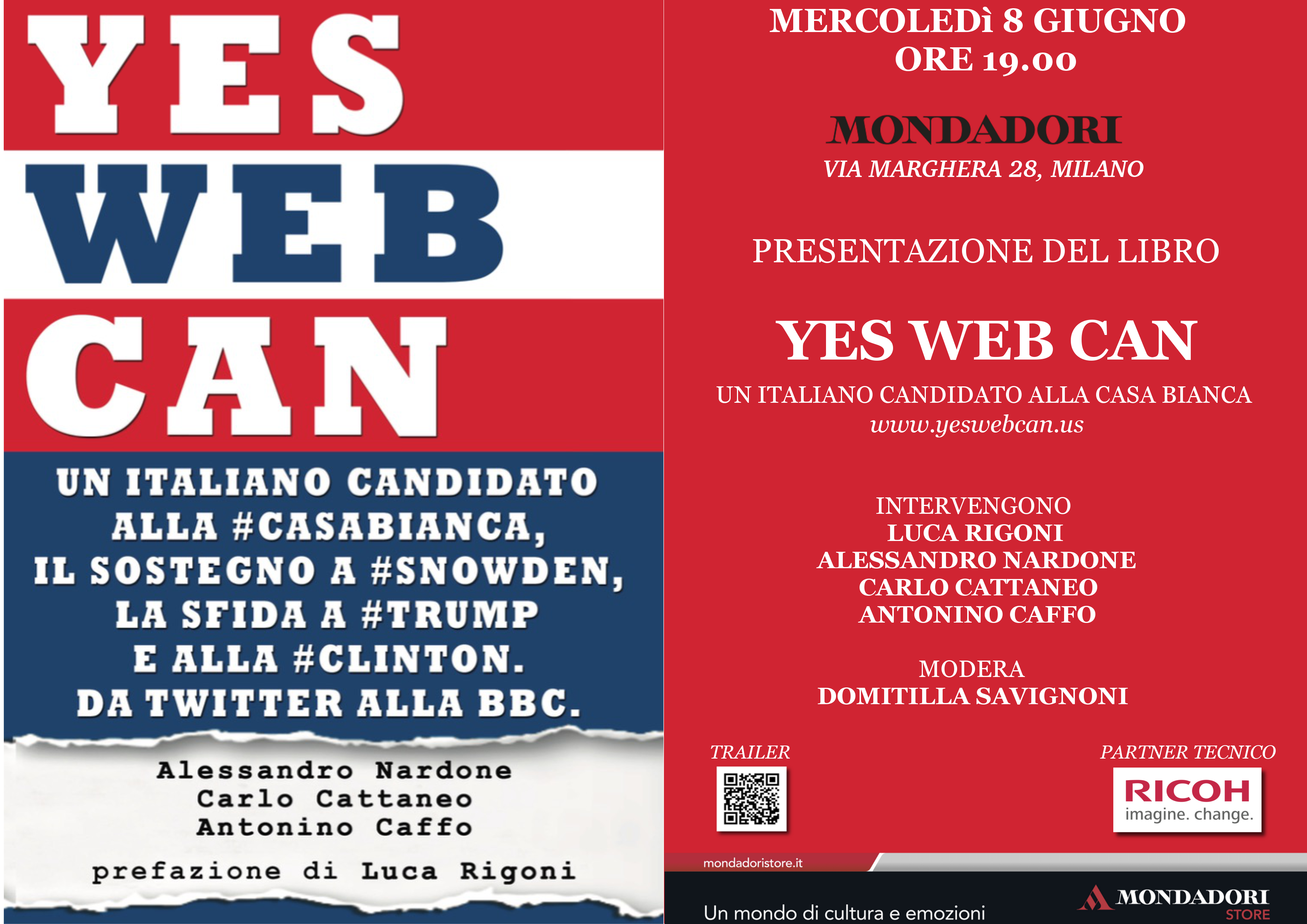 “Yes Web Can”, disponibile sui principali store (Mondadori, IBS, Amazon, Feltrinelli) e su ordinazione nelle librerie, vanta una prefazione di Luca Rigoni, giornalista di TgCom24, e verrà presentato mercoledì 8 giugno a Milano assieme alla conduttrice di TG 5 Domitilla Savigoni.