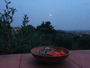 La tradizione vuole che il 23 giugno si raccolgano le erbe aromatiche,piante e fiori spontanei, e che poi tutto venga immerso in una ciotola d’acqua, esposta alla luce della luna. Il raccolto assorbirà la rugiada notturna capace di influenzare piante e fiori, conferendo loro una potenza particolare: nasce così la “rugiada degli Dei” un’acqua profumata in grado di donare salute, fortuna e amore.