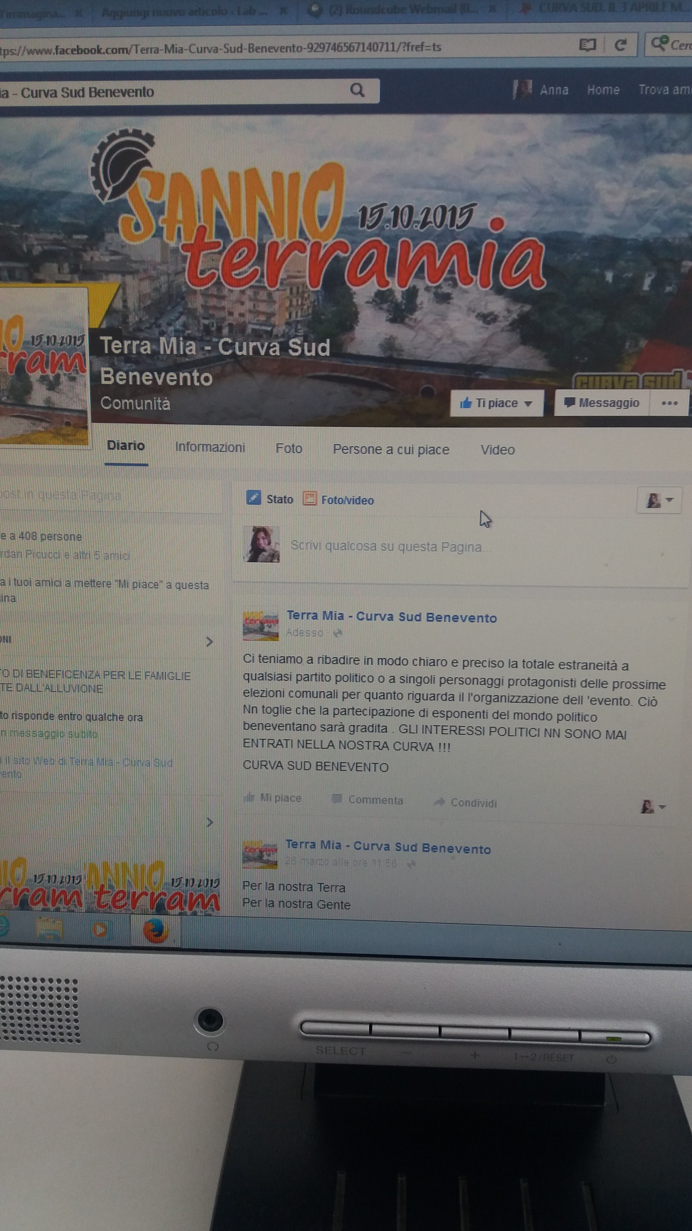 E’ tutto pronto, i tifosi sono carichi, oltre al match di sabato 2 aprile contro l’Ischia al Ciro Vigorito ,mancano pochi giorni per l’evento del 3 aprile, “Sannio Terra Mia”. Sul social network facebook, i giovani della Curva Sud, hanno pubblicizzato l’evento e in pochi giorni ha avuto il suo boom di adesioni. Sannio Terra mia, una domenica sera interamente dedicata alla solidarietà e a chi ha lottato contro il fango quel maledetto 15 ottobre del 2015. Luogo dell’appuntamento il rione Ponticelli, dove cinque mesi fa acqua e terriccio del fiume Calore, hanno messo a dura prova residenti e commercianti.