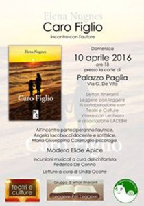 Domenica 10 aprile alle 18.00, presso la corte di palazzo Paglia, in via G. De Vita a Benevento, “Lettori itineranti – Leggere per leggere” in collaborazione con “Teatri e Culture”, ”Vivere con Lentezza” e associazione LADEBH, organizza l’incontro con l’autore Elena Nugnes che presenterà il libro “Caro Figlio”