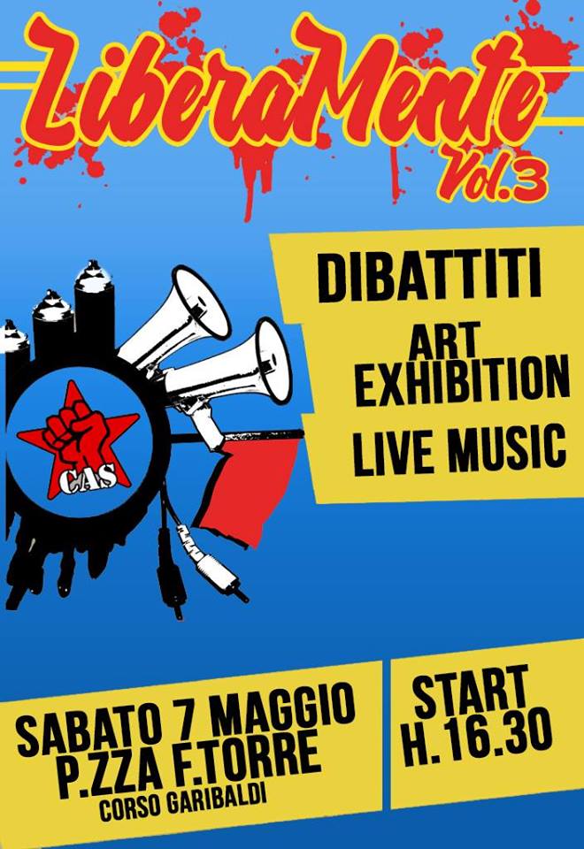Il Collettivo Autonomo Studentesco anche quest’anno ripropone la festa autogestita LIBERA-MENTE, una momento di confronto,aggregazione e divertimento che vuole dare la possibilità agli studenti di esprimere il loro talento artistico e musicali in una piazza.