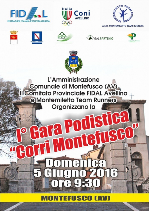 MONTEFUSCO – C’è attesa nel paese irpino per l’evento “Corri Montefusco” organizzato dall’ A.s.d. Montemiletto Team Runners, l’Amministrazione Comunale e Fidal Avellino. La prima edizione prenderà il via domenica 5 giugno, alle 09:30, per un percorso di 10 km con partenza da Passo Serra alle 09:30 ed arrivo in piazza Castello.