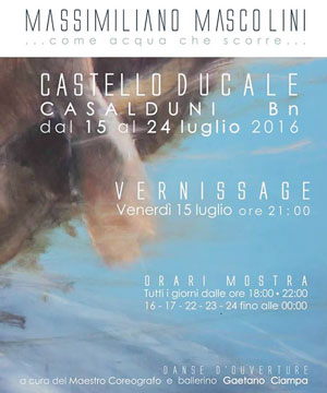 CASALDUNI – Lo splendido scenario del castello ospiterà la mostra di Massimiliano Mascolini. L’iniziativa è stata promossa dal Comune dal primo cittadino Pasquale Iacovella, dall’assessore alla Cultura Pina D’Aloia e dal consigliere comunale Rito Mazzarelli – aprirà i battenti venerdì 15 luglio e resterà aperta fino al 24 luglio, è un viaggio dentro le opere pittoriche dell’artista beneventano, che evidenzia tutto il suo percorso di crescita, di evoluzione verso linee più morbide, più sognanti, più eteree.
