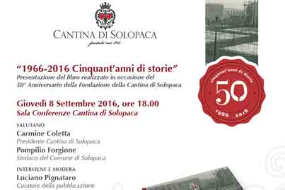 Giovedì 8 settembre a partire dalle 18.00, nella sala convegni di via Bebiana, si alzerà il sipario sul libro “I Cinquant’anni della Cantina di Solopaca”, la storia del vino Solopaca nella cooperazione.”