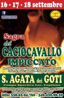 SANT’AGATA DE’ GOTI – Nei pressi del campo sportivo in Località Capitone un evento che valorizza il prelibato prodotto ricavato solamente da vacche podoliche, tipica razza dell’Appennino Meridionale; l’impiccagione non è altro che la cottura lenta del formaggio sulla brace: rimane ciondolante sul fuoco ad un’altezza di almeno 30 cm, attaccato alla sua stessa “corda” lungi dal contatto diretto con la brace sottostante.