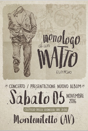 MONTEMILETTO – Si terrà sabato 5 novembre alle ore 21.00 presso il castello della Leonessa la presentazione ufficiale di “Monologo di un matto”, album d’esordio del giovane cantautore Eustachio Frongillo (in arte e sui social “Eustachio”). Il musicista ha scelto di “giocarsi in casa” il lancio del suo primo disco per sottolineare un preciso punto di partenza esistenziale e sonoro, quello dove affondano le sue radici. Il disco contiene 9 tracce più una bonus track, selezionate dal nutrito repertorio dell’artista, dallo stesso Eustachio e dell’arrangiatore Gabriele Grifa. L’album è stato registrato negli studi “Sound Design” di Marco Ruggero a Monteforte Irpino (AV) e masterizzato a Napoli presso “Bob Fix Mastering Studios”. Il disco uscirà con etichetta “Officina. In questi giorni sulla pagina Facebook Ufficiale, Eustachio ha dato qualche anteprima di quello che sarà un album che vede l’alternarsi di brani che affrontano temi vari: riflessioni di tipo sociale o intimiste, pezzi impegnati, canzoni d’amore; una varietà unificata dalla grande attenzione per i testi e da una ricerca che racchiude immediatezza melodica e soluzioni musicali mai banali. Appuntamento dunque il 5 novembre per scoprire quella che potrebbe essere la sorpresa discografica dell’anno.