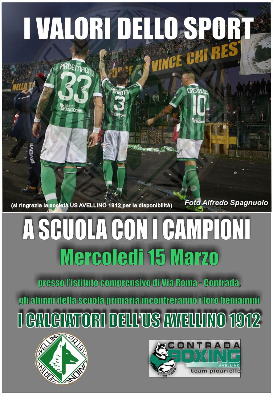 Con l’obiettivo di sensibilizzare i giovani sui temi legati al valore educativo dello sport, al rispetto e al fair play, domani mattina, mercoledì 15 marzo, a partire dalle ore 10:30, il plesso scolastico di via Roma, a Contrada (Av), ospiterà una delegazione di calciatori dell’Avellino, tra cui il capitano D’Angelo, gli attaccanti Ardemagni, Castaldo, Verde e il difensore Jidayi.