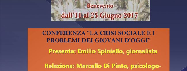 Alla Rocca dei Rettori di Benevento è partita la terza edizione della Rassegna d’Arte Contemporanea “Sinergie”, curata da Antonella Botticelli e promossa dall’Associazione Centro Culturale Arianna, presieduta da Immacolata Maddaloni. Nell’ambito della manifestazione, martedi 13 giugno, alle ore 18:30, si terrà il convegno “La crisi sociale e i problemi dei giovani d’oggi”, curato dallo psicologo e psicoterapeuta Marcello Di Pinto. Quest’ultimo si è specializzato e formato in Psicoterapia Integrata, Psicoterapia Gestalt, Body Psychotherapy e Ipnositerapia.