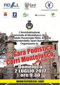 Al via la 2ª edizione della “Corri Montefusco”, dopo il successo dell’edizione del 2016 torna la corsa promossa dalla L’A.s.d. Montemiletto Team Runners, l’Amministrazione Comunale di Montefusco e la Fidal di Avellino. Prenderà il via domenica 2 luglio, alle 09:30, con un nuovo percorso quest’anno di circa 10 km. Saranno circa 300 i partecipanti che si riuniranno alle 8.30 in località Passo Serra dove, un’ora dopo, prenderà il via la corsa che toccherà i punti principali del ridente Borgo con arrivo proprio nella piazza principale del paese.