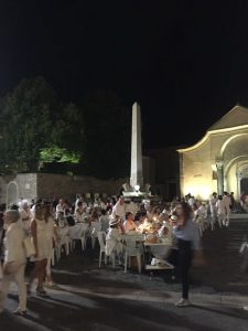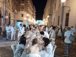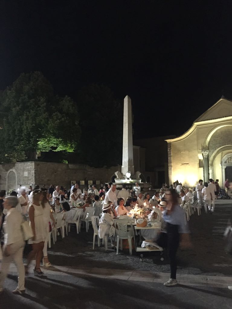 Tutto rigorosamente bianco , le sedie, i tavoli, le tovaglie pregiate, ricamate, semplici o minimal, e anche gli ospiti di questa immensa e infinita tavolata vestiti rigorosamente di bianco.