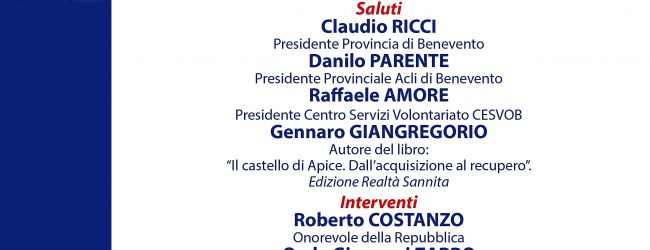Nel corso dell’incontro Gennaro Giangregorio, che ha di recente pubblicato il saggio “Il Castello di Apice. Dall’acquisizione al Recupero” (per le Edizione Realtà Sannita), porterà il suo contributo alla rievocazione.