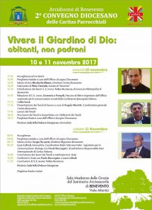 «La terra ci venne affidata come dono sublime e come eredità della quale tutti condividiamo la responsabilità finché, “alla fine”, tutte le cose in cielo e in terra saranno ricapitolate in Cristo (cfr Ef 1,10). La dignità e la prosperità umane sono profondamente connesse alla cura nei riguardi dell’intera creazione»: sono le parole che aprono la lettera di Papa Francesco e del Patriarca Ecumenico Bartolomeo in occasione della terza Giornata mondiale di preghiera per la cura del Creato celebrata lo scorso 1 settembre. È a questo messaggio, e alla “conversione ecologica” a cui ci invita il Pontefice nell’enciclica “Laudato si’”, che si ispira il Secondo Convegno delle Caritas Parrocchiali “Vivere il giardino di Dio: abitanti, non padroni” che si terrà i prossimi 10 e 11 novembre nella Sala Madonna delle Grazie del Seminario Arcivescovile di Benevento.