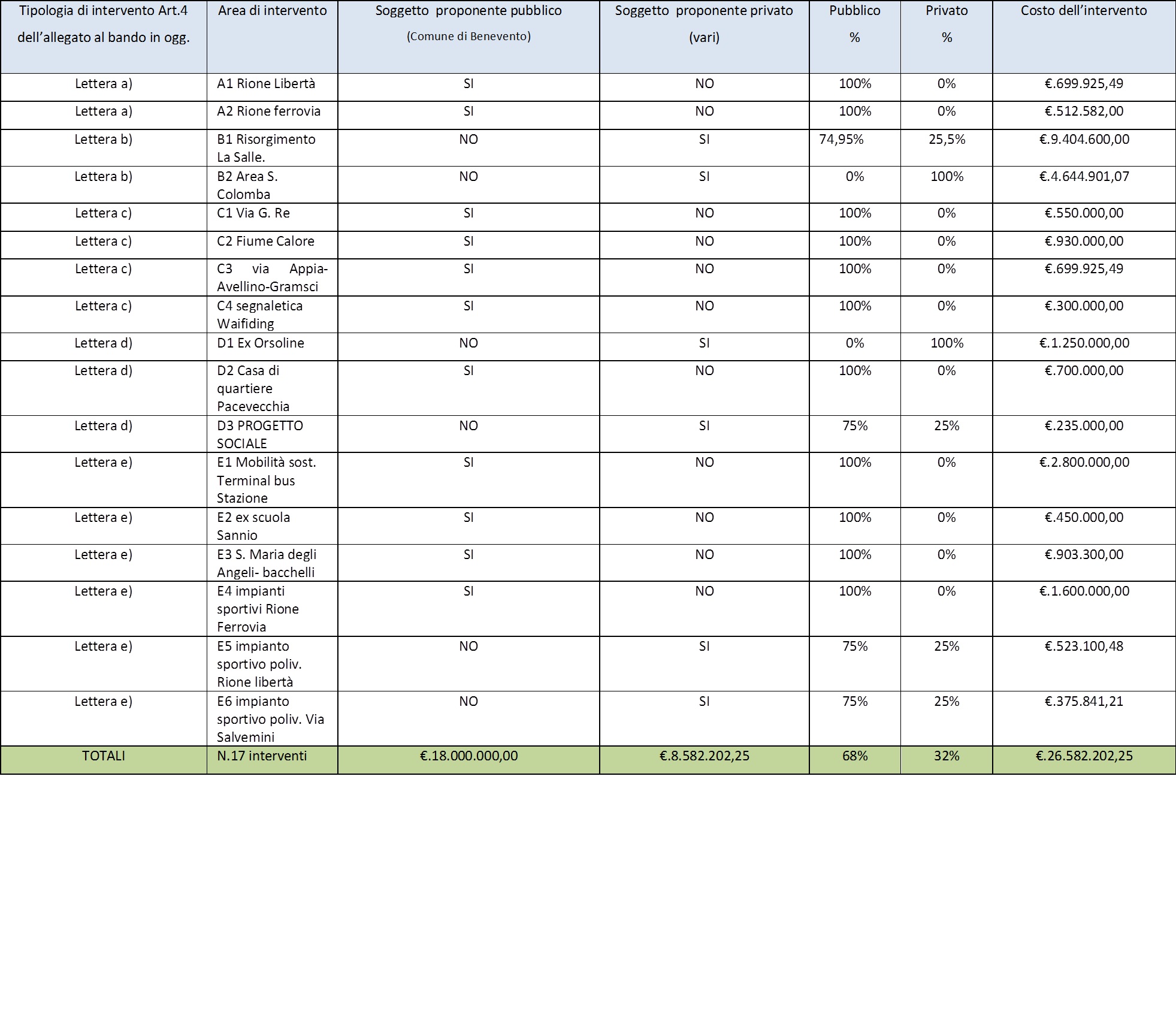 Ecco di seguito gli interventi finanziati.
