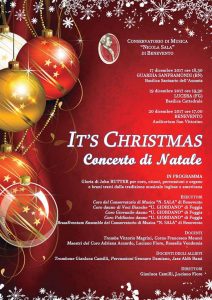 Appuntamenti artistici di grande prestigio per il Conservatorio di Musica “Nicola Sala” di Benevento: IT’S CHRISTMAS è il Concerto di Natale che verrà eseguito – dopo la tappa di domenica 17 dicembre a Guardia Sanframondi – martedì 19 dicembre, alle ore 19.30, presso la Basilica Cattedrale di Lucera (Foggia) e mercoledì 20 dicembre, alle ore 17.00, presso l’Auditorium San Vittorino di Benevento.