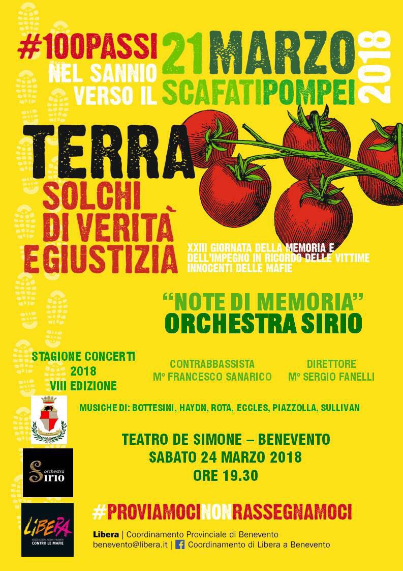 Si terrà domani sera, alle ore 19.30, presso il Teatro De Simone a Benevento, il concerto “Note di Memoria” eseguito dell’Orchestra Sirio diretta dal maestro Sergio Fanelli e con il contrabbasso del Maestro Francesco Sanarico. La serata prevede le musiche di Bottesini, Haydn, Rota, Eccles, Piazzolla e Sullivan.