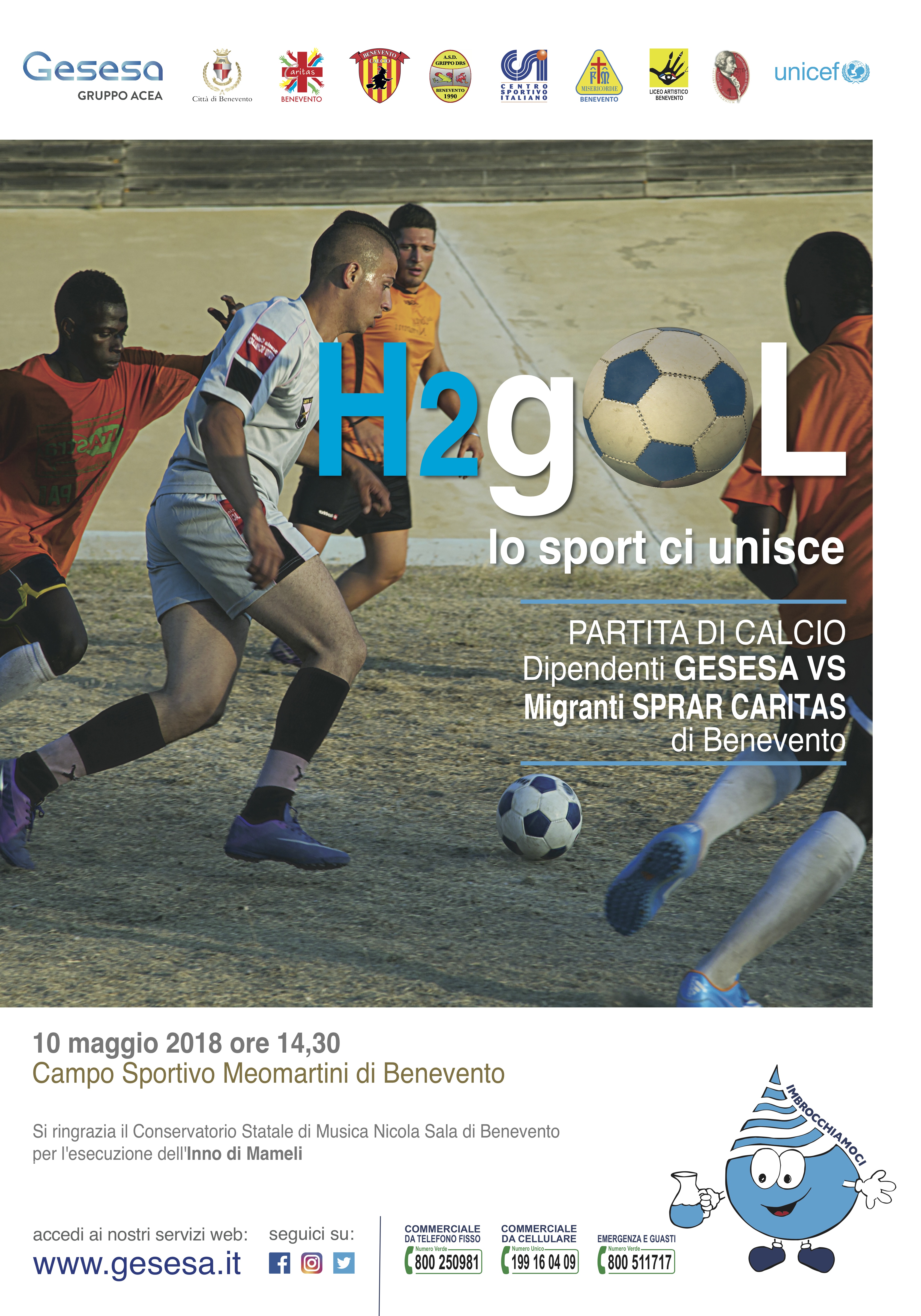“H2GOL, Lo Sport ci Unisce, Partita Dipendenti GESESA VS Migranti degli SPRAR CARITAS. Dall’esperienza della partita con i ristretti della Casa circondariale di Benevento, nasce l’idea di abbracciare anche un’altra realtà, oggi importantissima per la nostra Nazione, e per la nostra Città, “ l’Immigrazione”. GESESA per il Sociale, in collaborazione con la CARITAS di Benevento e il patrocinio del Comune di Benevento, ha organizzato la prima partita di calcio tra i dipendenti GESESA e i Migranti degli SPRAR, i centri di accoglienza presenti nel nostro territorio e gestiti dalla CARITAS diocesana di Benevento.