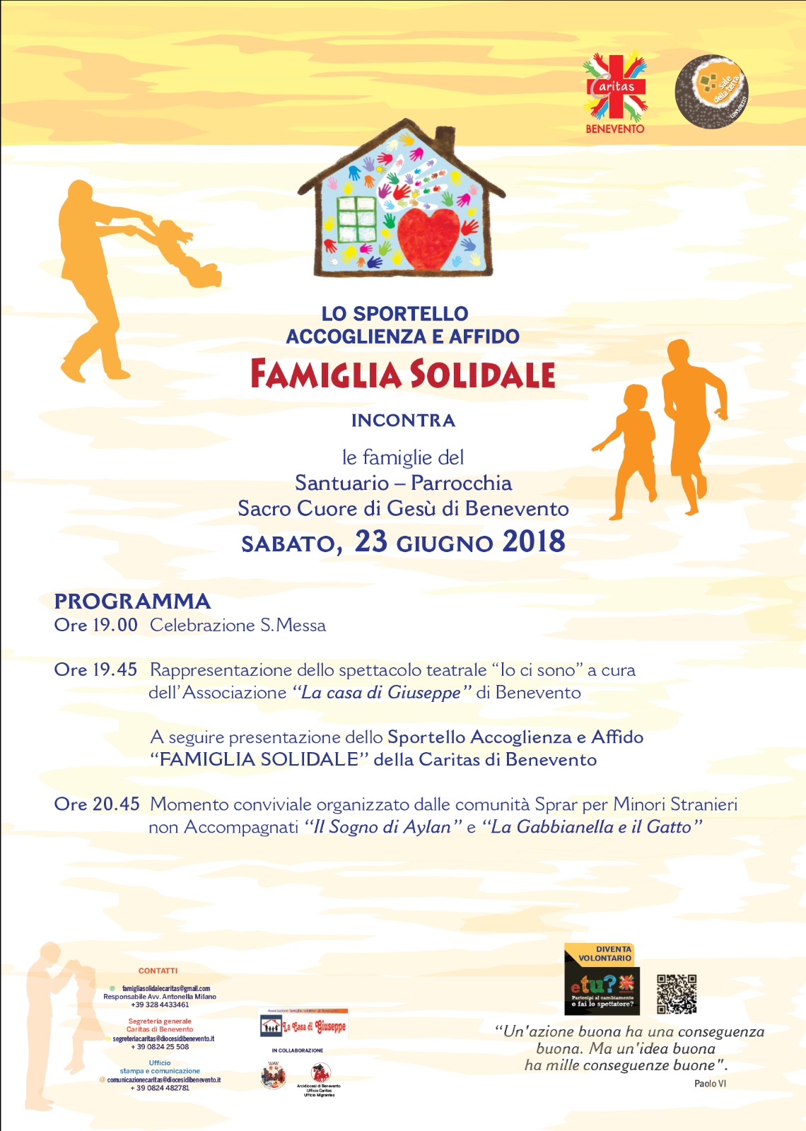 Una serata di riflessione per discutere sul tema dell’accoglienza e dell’affido familiare, si terrà sabato 23 giugno, a partire dalle ore 19.00, presso il Santuario-Parrocchia Sacro Cuore di Gesù di Benevento.
