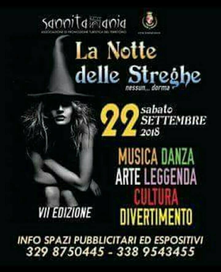 Venerdì 21 settembre 2018, alle ore 12.00 presso la sala consiliare del Comune di Benevento, Palazzo Mosti – Via Annunziata – sarà ufficialmente presentata alla stampa la settima edizione de “La Notte delle Streghe”, in programma nel capoluogo sannita sabato 22 settembre.