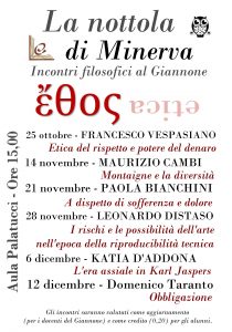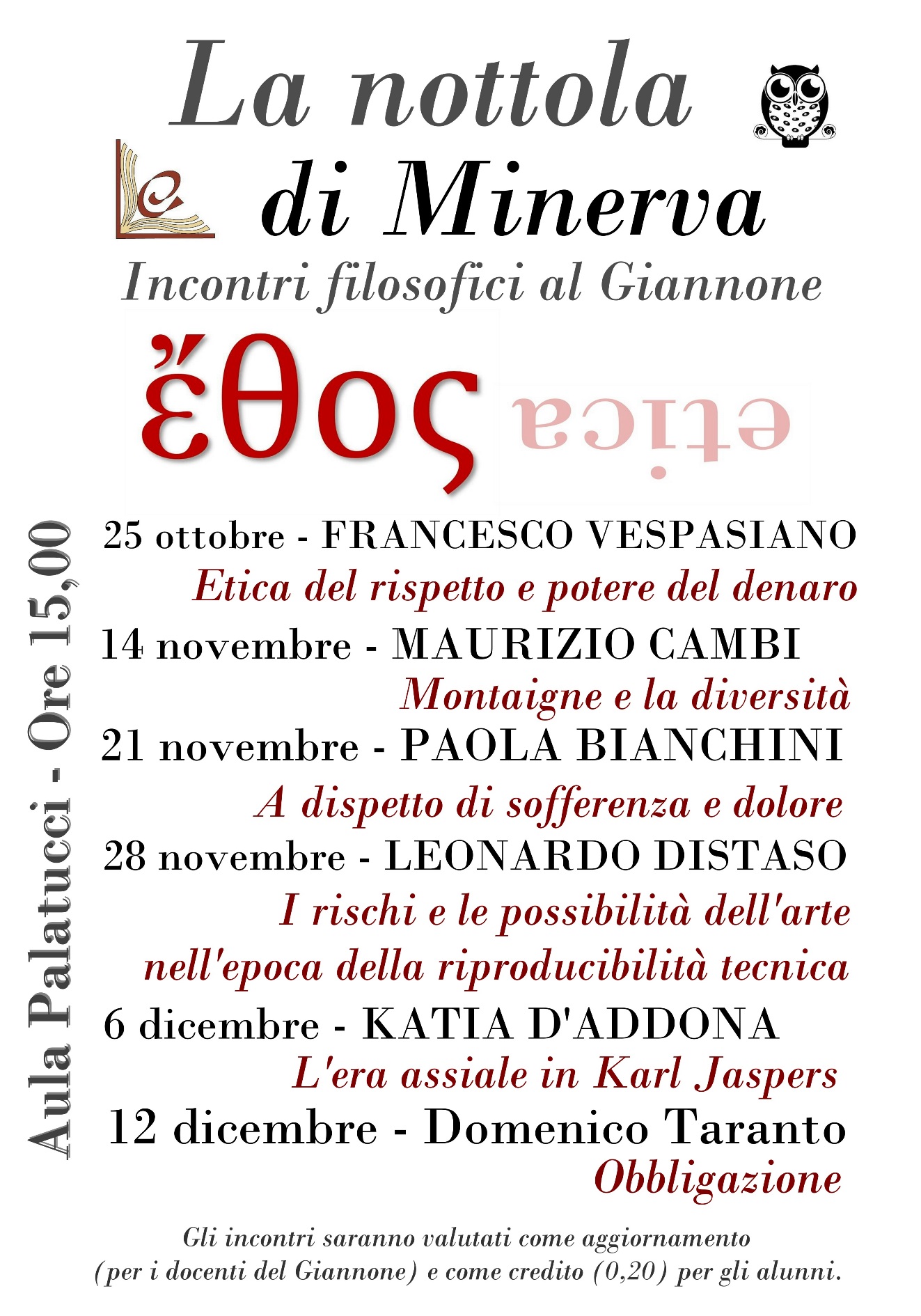 Mercoledì 14 novembre (alle ore 15,00 nell’Aula Palatucci) si terrà il secondo incontro del ciclo filosofico promosso dal Liceo “Pietro Giannone”, “La nottola di Minerva”.