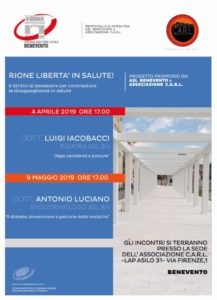 Proseguono gli incontri per promuovere il diritto alla salute al Rione Libertà dopo la firma del protocollo, a dicembre scorso, tra la Asl di Benevento e l’associazione CARL (Cittadinanza Attiva Rione Libertà).