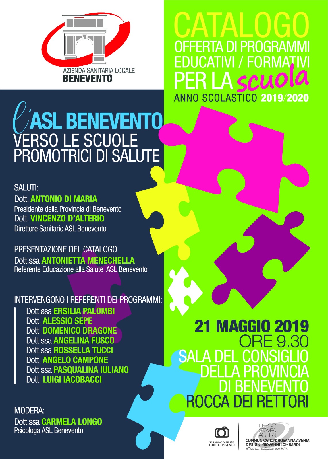 Martedì 21 maggio, alle 9,30, la Asl di Benevento presenterà il catalogo dell’offerta dei programmi educativi/formativi per la scuola nella sala consiliare della Rocca dei Rettori.