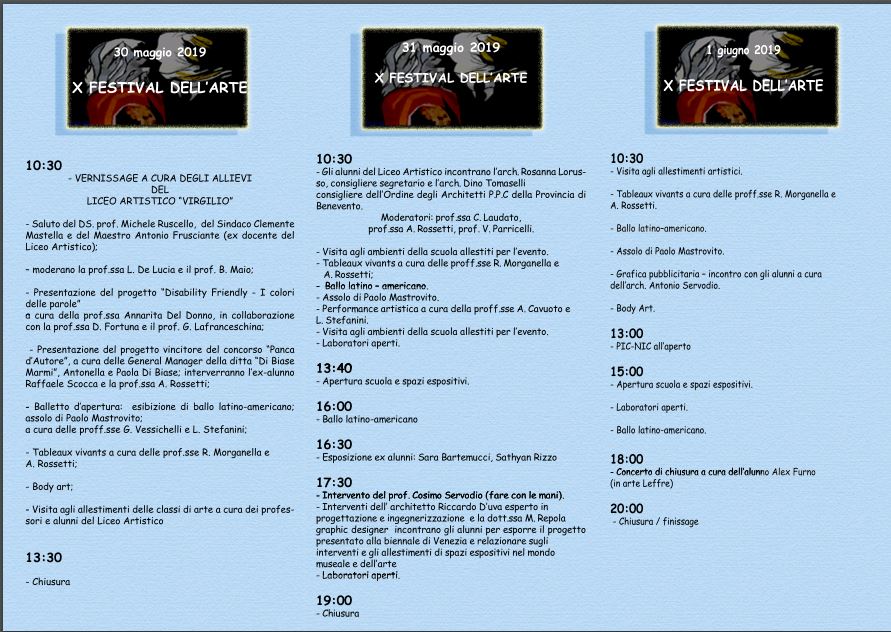 Da giovedì 30 maggio a sabato 01 giugno il Liceo Artistico “Virgilio” di Benevento aprirà le