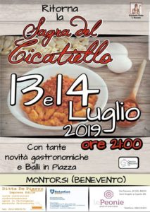Una due giorni dedicata al cicatiello. A Montorsi torna la sagra intitolata al tipo di pasta conosciuta anche col nome di “cavatelli“. La frazione di Sant’Angelo a Cupoloha deciso di dedicare le serate del 13 e 14 luglio a uno dei prodotti più noti delle nostre terre. “La sagra del cicatiello” prenderà il via alle ore 21 di sabato prossimo e presenterà tante novità gastronomiche mentre la serata sarà allietata dai balli in piazza. Un appuntamento da non perdere per gli amanti delle bontà gastronomiche e, soprattutto, del cicatiello.