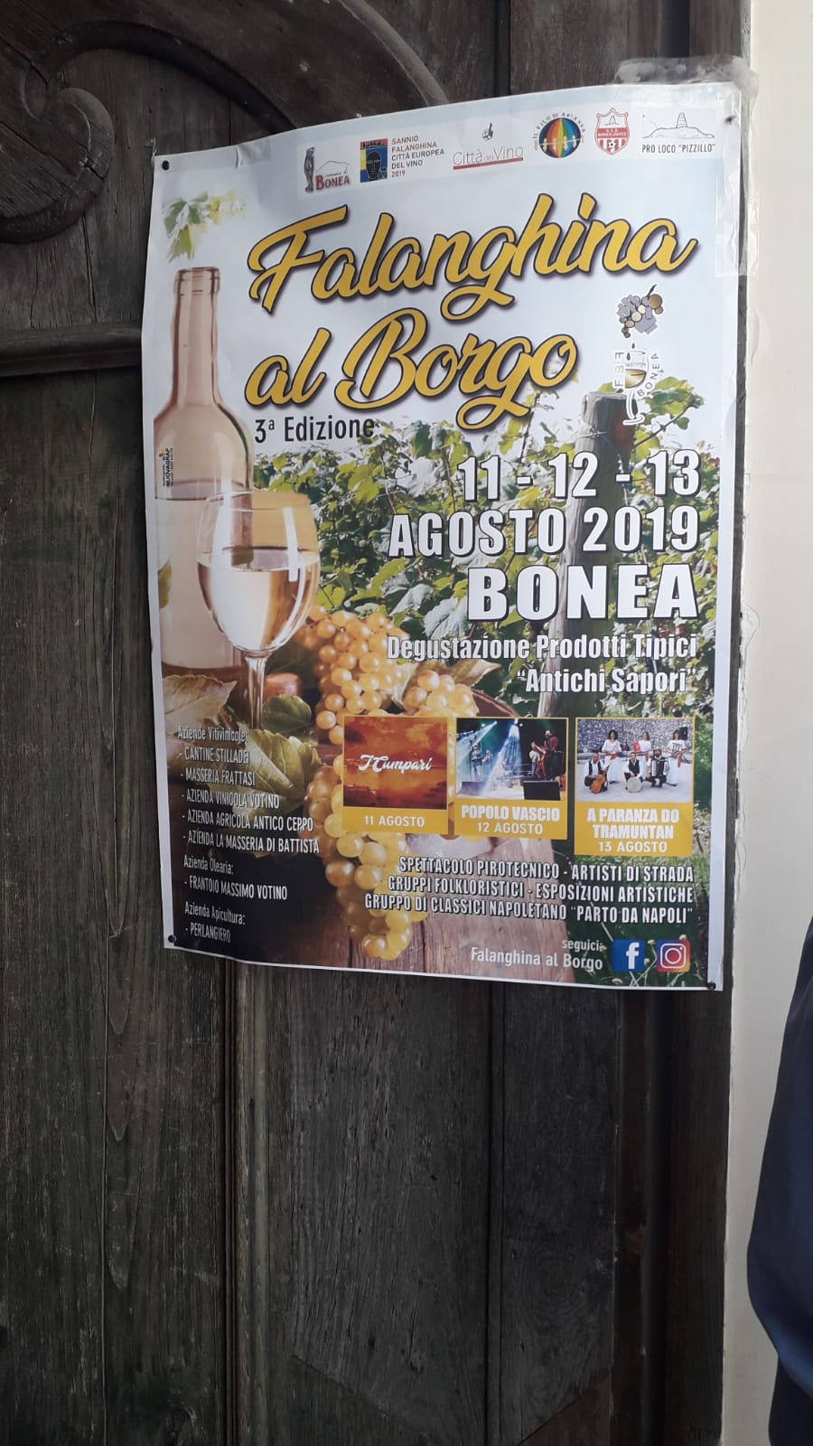 Un appuntamento promosso dal Comune di Bonea e una iniziativa voluta dalla Amministrazione Roviezzo sin dall’atto del suo insediamento al fine di recare su una più ampia vetrina di visibilità quella che è una delle peculiarità locali: ovvero il vitigno Falanghina, le sue vigne secolari, le cantine, ben cinque, che la imbottigliano entro i confini boneani. Le tre serate, che saranno inaugurate da un convegno di apertura, vedranno le varie produzioni mostrarsi alla platea. E, poi, musica e folklore a fare da corollario. Ma, soprattutto, la ufficiale consegna, nel corso della tre-giorni, della bandiera delle “Città del vino”, vessillo che sarà conferito ai boneani per sancirne in modo simbolico, dopo la già avvenuta ufficialità, l’ingresso nello specifico circuito come spiega il primo cittadino Giampietro Roviezzo.