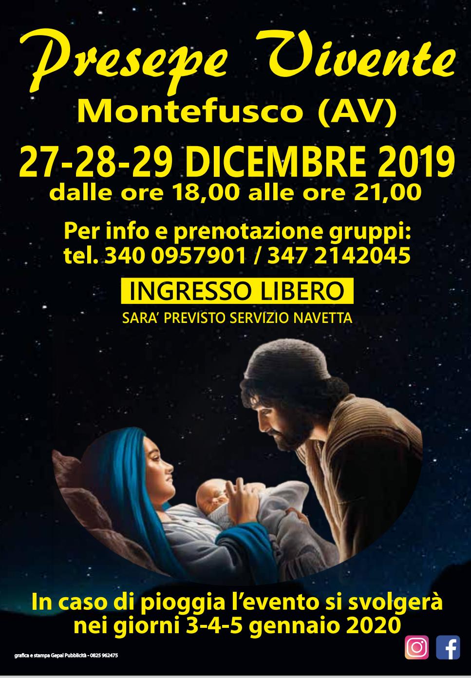 Torna l’appuntamento a Montefusco con il presepe vivente. L’evento è in programma il 27-28-29 Dicembre dalle ore 18 alle ore 21. L’ingresso è gratuito e in caso di pioggia si svolgerà nei giorni 3-4-5 gennaio. Un itinerario suggestivo nell’antico Borgo dell’irpinia tra storia e atmosfera natalizia.