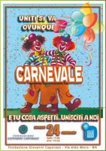 Una coloratissima Festa di Carnevale si terrà Lunedì 24 Febbraio 2020, alle ore 17.00 presso la sala della Fondazione Giovanni Caporaso in via Aldo Moro (Pacevecchia), per suggellare l’avvio di una nuova collaborazione tra la Associazione Italiana Persone Down- Sezione di Benevento (presente a livello nazionale da oltre 40 anni ma di recente costituzione nella sua sezione di Benevento) e la Fondazione nata in memoria del dr. Giovanni Caporaso, due realtà beneventane divenute nel tempo importanti punti di riferimento per la disabilità, soprattutto giovanile, nel nostro territorio.