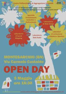 Si terrà domani 5 maggio, presso il centro Polifunzionale di Aggregazione giovanile di Montesarchio, dalle 16 e 30 alle 18 e 30, l’Open day del progetto “TED – Territorio Educativo”, finanziato dall’impresa sociale “Con i Bambini”, attuato dalla cooperativa “Era” e promosso dal comune di Montesarchio.