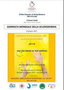 In occasione della Giornata Mondiale della Sclerodermia, l’A.O.R.N. “San Pio”, guidata dal Direttore Generale Mario Nicola Vittorio Ferrante, organizza per martedì 29 giugno una giornata di prevenzione per la Sclerosi Sistemica, con visite gratuite presso l’Ambulatorio di Reumatologia dalle ore 9.30 alle ore 13.00.