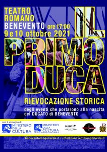 Sabato 9 e domenica 10 ottobre 2021, alle ore 17.00, nella suggestiva cornice del Teatro Romano di Benevento andrà in scena “Il Primo Duca”, rievocazione storica sulle origini del Ducato di Benevento.