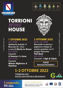 Torrioni Wine House è promosso dal Comune di Torrioni nell’ambito del POC Campania 2014-2020 Azione 4 “Giugno 2019 – giugno 2020”, in partneriato con i Comuni di Chianche, Castelvetere sul Calore, Montemarano, Paternopoli e Taurano, con la direzione artistica di Roberto D’Agnese per Omast Eventi.